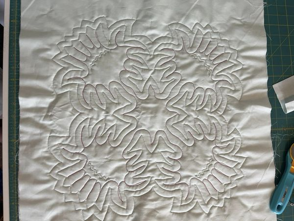One thing that 40 years of quilting has taught me is to square up blocks, especially if anything is on the bias. Final trim was for 10". I was expecting 9.5", but I think many of my seams were a scant 1/4"
