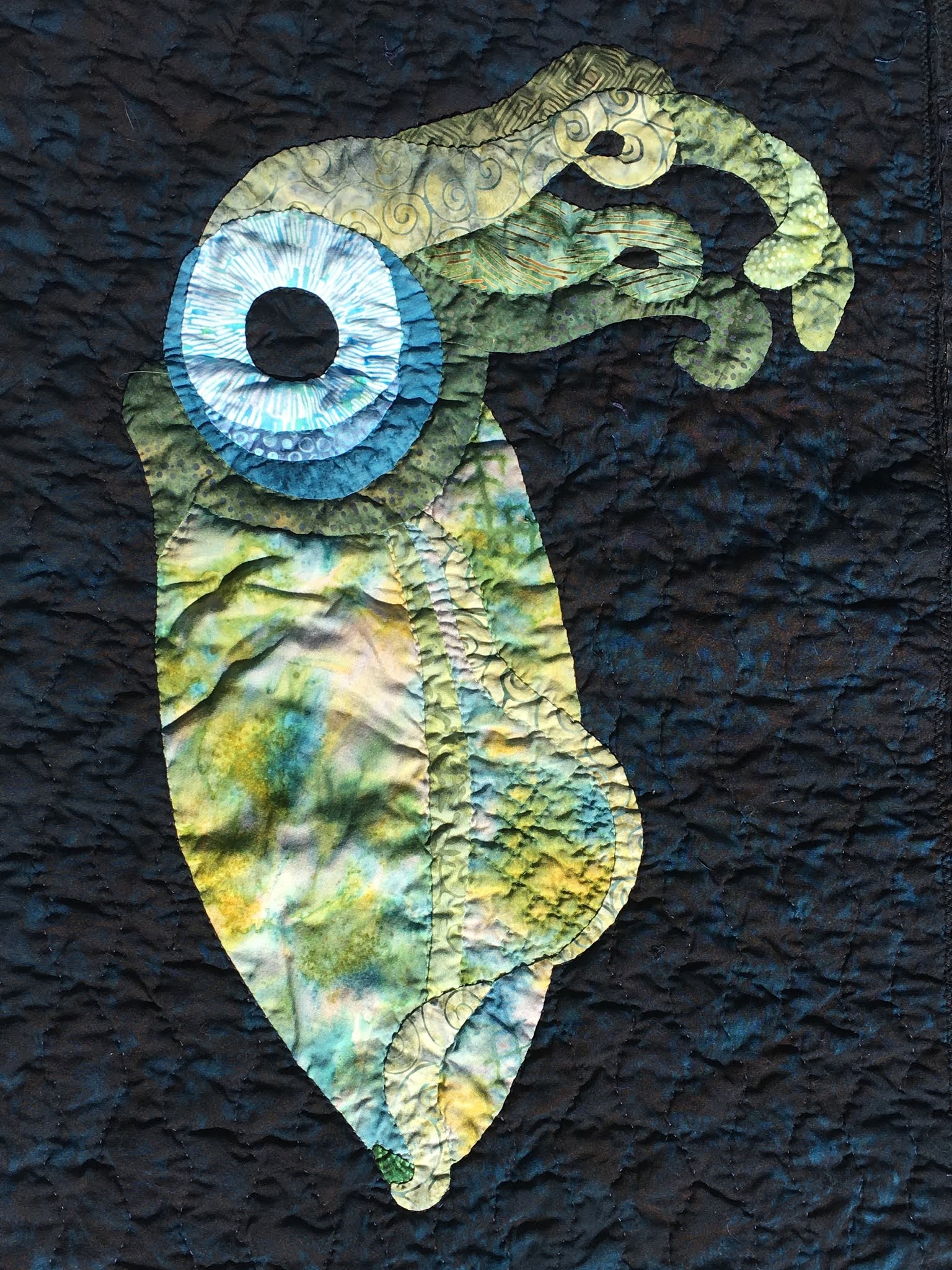 I added the backing to Monet and top-stitched the edge. I had every intention of stitching some stabilizing lines vertically. Instead, I threw it in the washer and drier and declared it done. Quarter for size reference of the 1" squares.